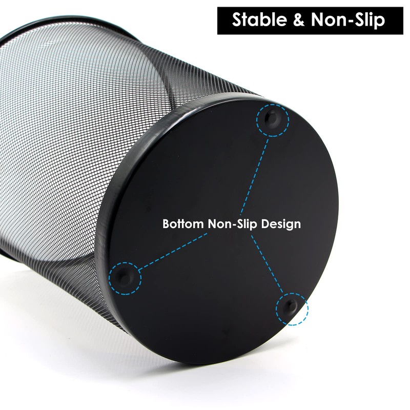 - ROUND EDGE & GRID DESIGN: Smooth wire mesh seams won't scratch the garbage bag. Ventilated grids keep the trash bin breathable and moisture-proof, preventing odor accumulation.