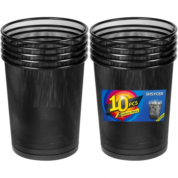 SHSYCER Black Mesh Trash Cans 4 Gallon, 10 Pack, Metal Wire Wastebaskets, Waste Basket Trash Can, Small Trash Cans, Recycling Garbage Container Bin for Office, Home, Bedroom