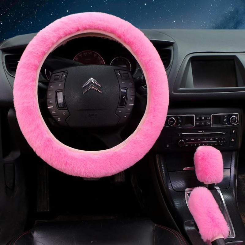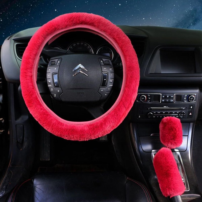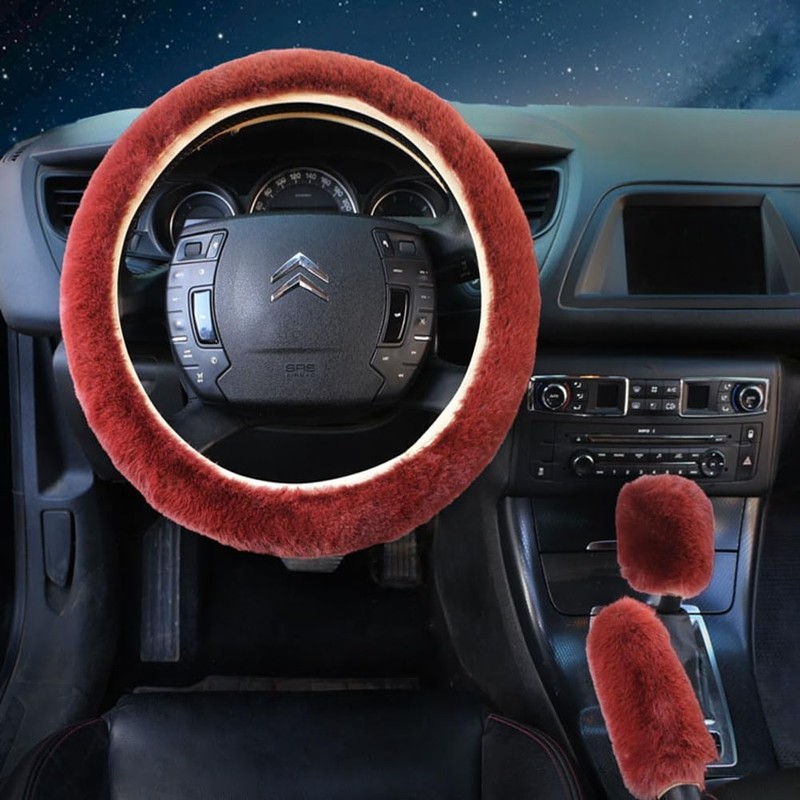 SHTGOI Steering Wheel Cover Universal Car Steering Wheel Cover Winter Plush Steering Wheel Cover Non-Slip Steering Wheel Cover Steering Wheel Fur Cover with Handbrake Gear Cover Car Accessories for