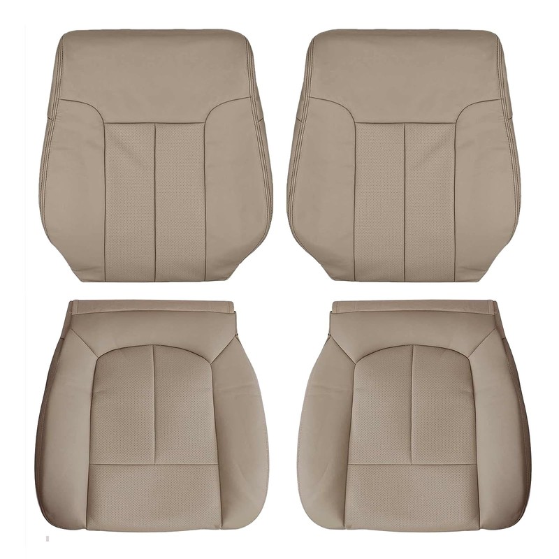SHTLYH Driver & Passenger Bottom & Lean Back Perforated Leather Seat Cover Tan Replacement for 2009-2014 Ford F150