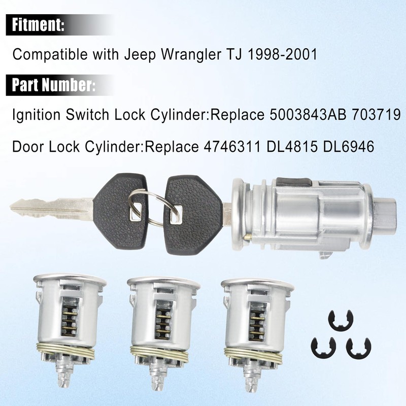 Shtuomoland Ignition Switch Lock Cylinder & Door Lock Cylinder with 2 Keys Fit for Jeep Wrangler TJ 1998-2001 Replace 5003843AB 4746311 703719 DL4815 DL6946