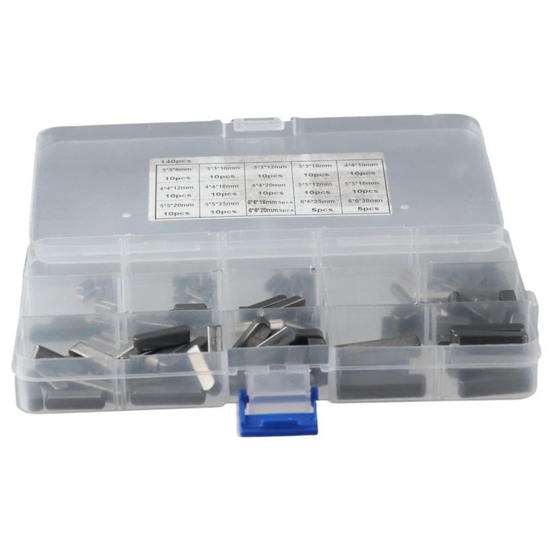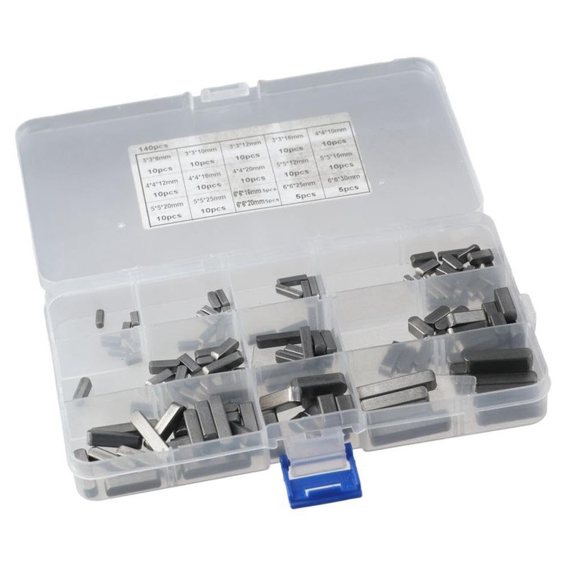 - Comprehensive Assortment: The Key Stock Assortment Kit includes 140 pieces in 16 different sizes, providing you with a wide variety of options for your needs. The kit contains 3mm, 4mm, 5mm, and 6mm round-ended key stock in various lengths, including 3x3x8mm, 3x3x10mm, 3x3x12mm, 3x3x16mm, 4x4x10mm, 4x4x12mm, 4x4x16mm, 4x4x20mm, 5x5x12mm, 5x5x16mm, 5x5x20mm, 5x5x25mm, 6x6x16mm, 6x6x20mm, 6x6x25mm, and 6x6x30mm.