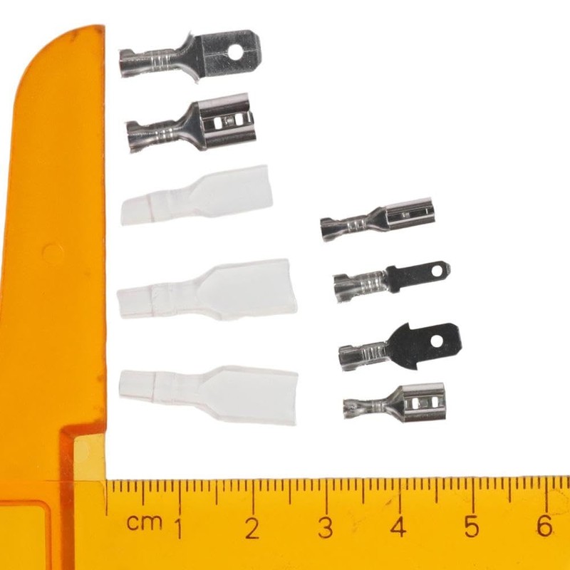 • Versatile Assortment: This kit includes a variety of non-insulated mixed male and female spade crimp terminal connectors, including 2.8mm, 4.8mm, and 6.3mm types. This assortment provides options for different wire sizes and applications.