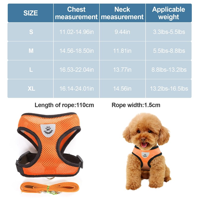 shudyear Dog Walking Chest Harness and Leash, Anti-Escape Adjustable Soft Mesh Dog Leash and Harness Set for Small Dog and Puppies, Vest for Medium Sized Dogs (Orange, M)