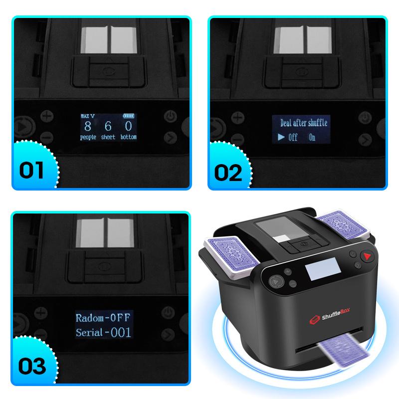 - Fast, Slient & Jam-Free Shuffling & Dealing: comparing to the flimsy made product, the ShuffleBox G1 Pro gives you a more quietly, jam-free and faster shuffling and card distributing experience.