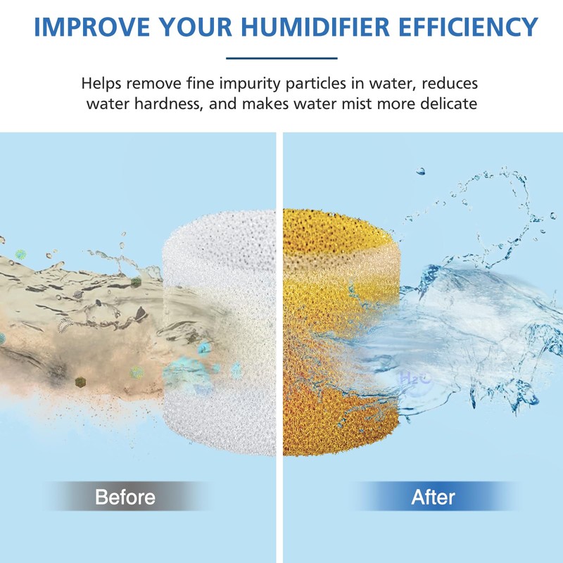 - 適度な加湿器交換フィルターの頻度を維持し、スプレーをよりクリアにし、加湿器をより効率的にします。 注意: 多数のフィルターは箱の中でお互いを押しつぶしますが、水に入れるとふわふわになります。 使用しない場合は、保存のために密封してください。