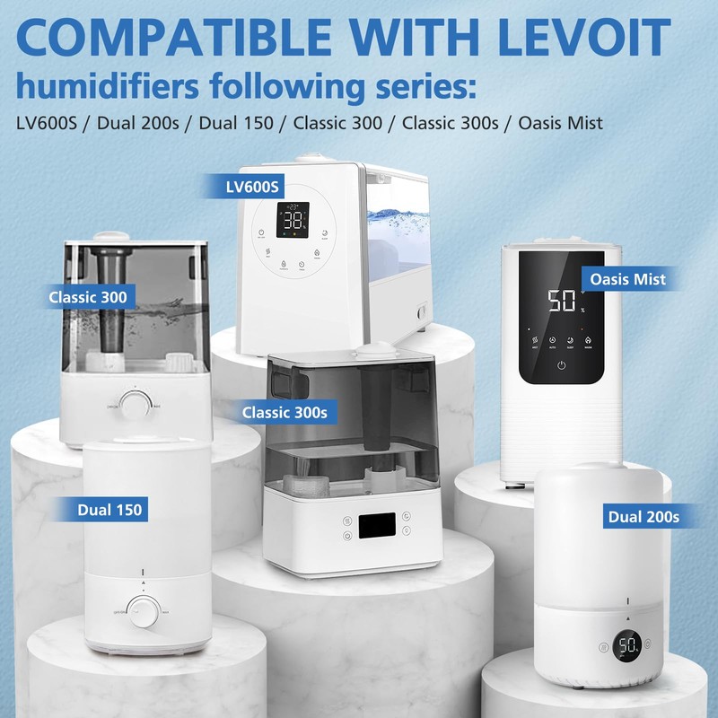 - 【互換性のあるモデル】この加湿器交換用フィルターは、Levoit加湿器lv600s、Dual 200s、dual 150、Classic 300、Classic 300s、oasis mist lv450sモデルシリーズと互換性があります。加湿器に丸型カバーが内蔵されている場合は、使用することもできます。