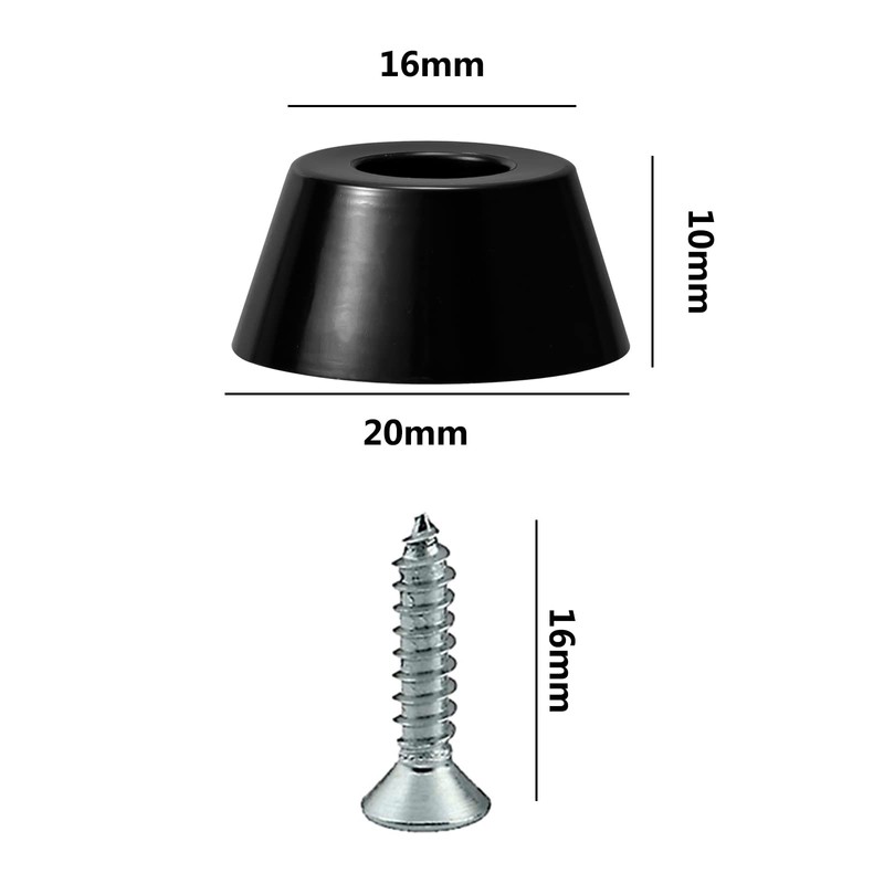 - Compared with self-adhesive round foot pads, our products are fixed with screws, which is more stable. Each tapered rubber foot is equipped with an embedded stainless steel gasket for longer life.