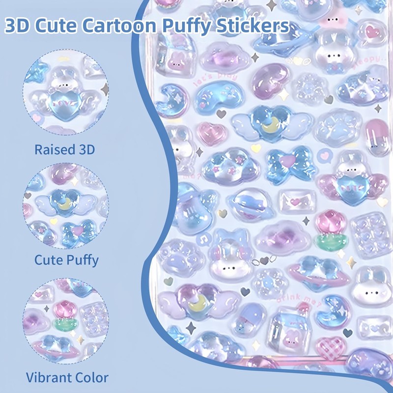 • 3D CUTE CARTOON PUFFY STICKERS:You will receive a package of cute stickers with a cute rabbit theme pattern. The puffy stickers adopt a unique 3D stereoscopic design, which are soft and three-dimensional. The kawaii stickers create a wonderful and joyful visual effect, full of fun. The 3d stickers add a cute atmosphere to you