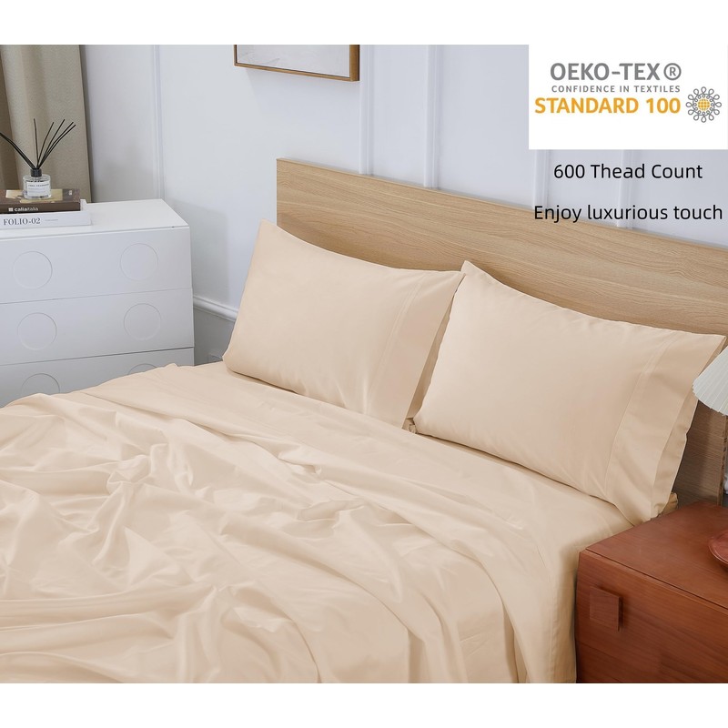 - 100% Egyptian Cotton - Our bed sheets set are made by 100% Egyptian Cotton with High 600 Thread Count Cotton Fabrics - BREATHABLE and SOFT.