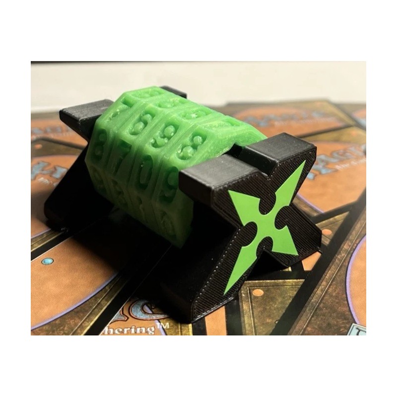 Track your life points in style with this unique 4-digit dial counter designed for Magic: The Gathering, Yu-Gi-Oh!, and other TCG/tabletop games. Inspired by the classic shuriken, this counter features an eye-catching X-shaped design in sleek black and neon green that glows in the dark.