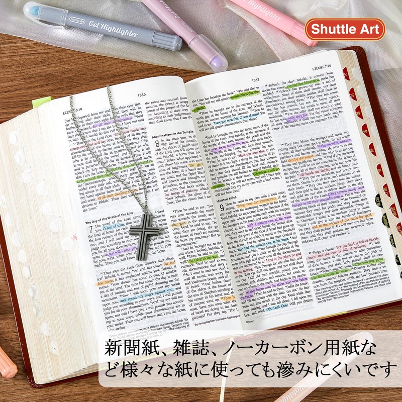 - 【様々な利用シーン】教科書やノートの重要箇所にマーキングしたり、カレンダーに印をつけたり、聖書や他の書籍を色分けしたりするのに最適です。長時間使っても目が疲れない蛍光感が薄いカラーで、手帳好きの女性と子供におすすめです。学校での勉強に、オフィスでの仕事に使いやすいです。ビジネスやプライベートを問わず日常的にお使い頂けます。