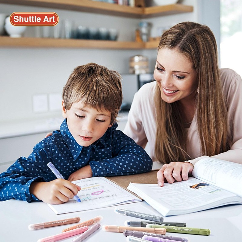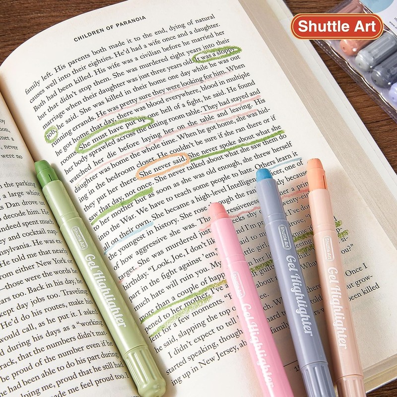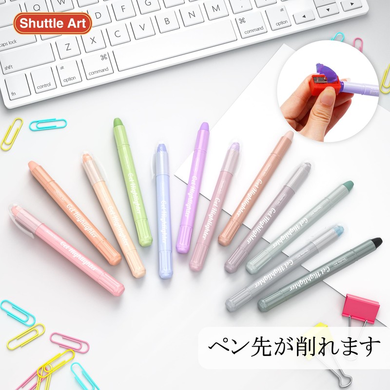 Shuttle Art 蛍光ペン 淡いカラー 12色セット 固形蛍光マーカー 蛍光クレヨン ソフト色合い 速乾 裏移りしにくい 繰り出し式 ゲルインク 透明ケース付き 教科書/ノート/カレンダー/手帳にマーキング 色塗り 子供 女の子 勉強 仕事 学校 オフィス 聖書用 収納便利