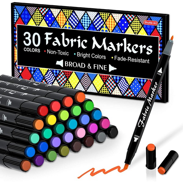 Shuttle Art 布ペン ツインタイプ 30色セット 布に書けるペン 布用マーカー 水性 耐水 耐久 ウォッシャブル 洗っても落ちない 色褪せしにくい 乾燥まで速い DIY ハンドメイド 手作り イラスト 落書き スニーカー Tシャツ カンバス ネームペン 子供