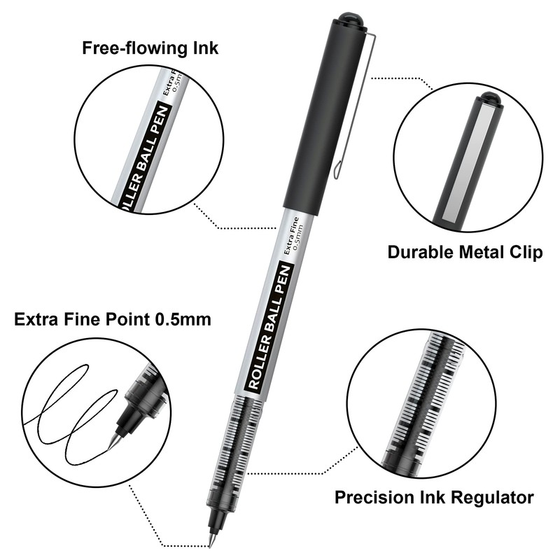 - CONVENIENT VALUE PACK: Shuttle Art 10 pack 0.5mm rollerball pens are all with black ink. 10 Pack will fully meet your demands of daily writing, marking and signing.
