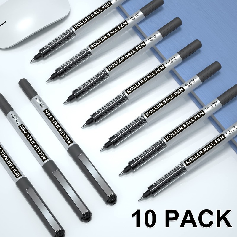 Shuttle Art Rollerball Pens, 10 Pack Black Liquid Ink Pens, 0.5mm Extra Fine Point, Quick Drying for Writing Journaling Taking Notes School Office