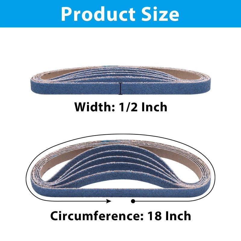 【Widely Application】Works great with 1/2 x 18 inch air belt sander,widely used on sanding metal, stainless steel, wood, furniture. Great for smoothing surfaces and edges, the zirconia belt can hold up really well to metal when deburring