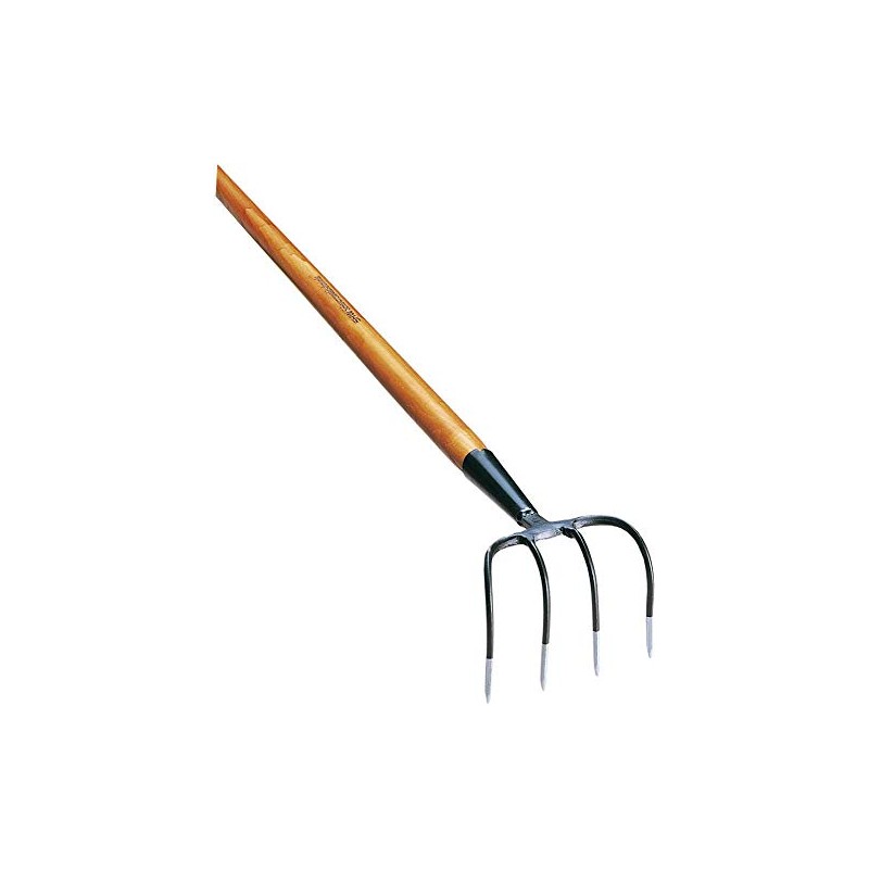 - 4 Rund-Zinken, 130 x 110 mm, mit Eschen-Stiel 1350 mm