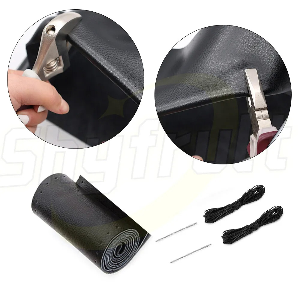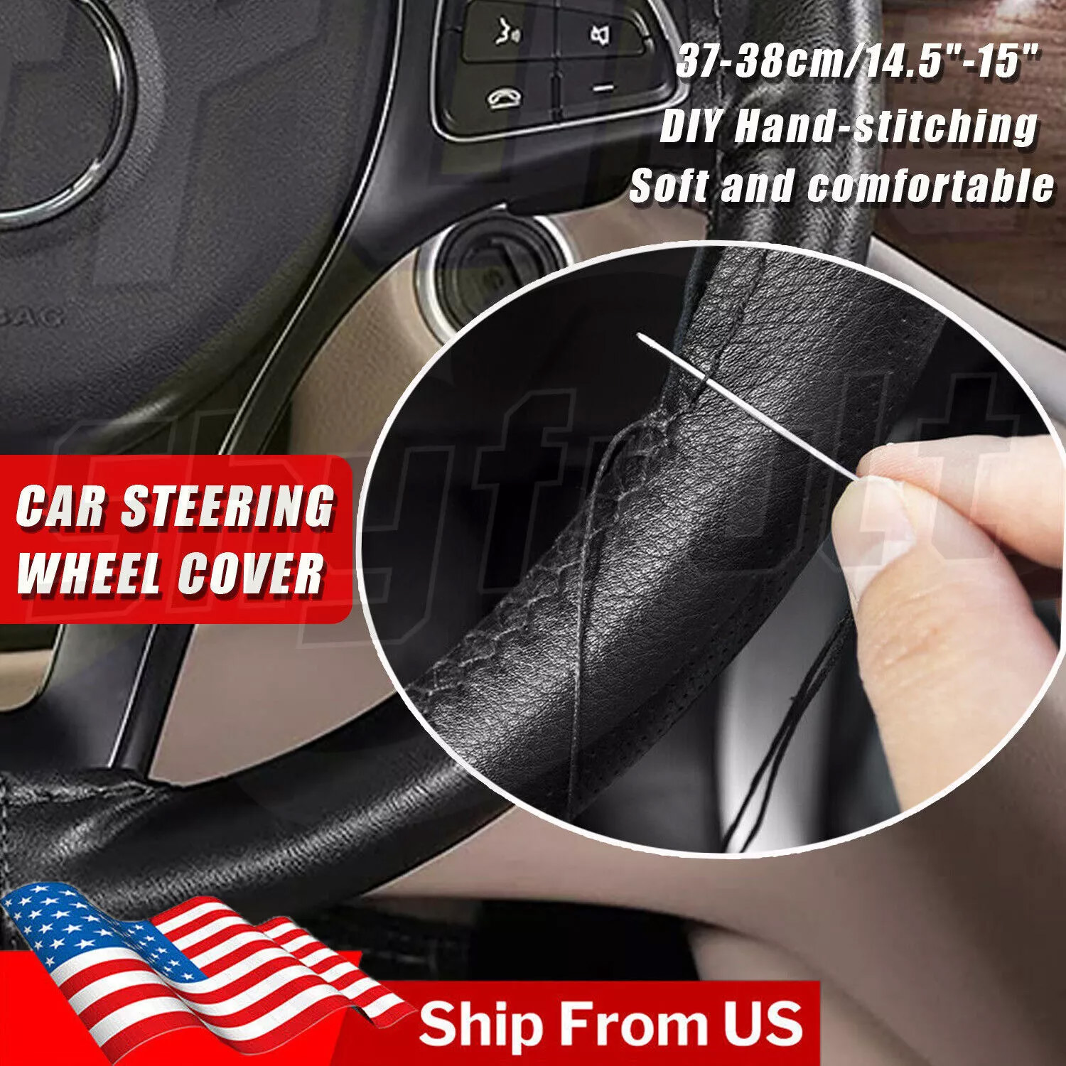 DIY Hand Sewing Fine Leather Auto Car Steering Wheel Cover W/ Needle & Thread