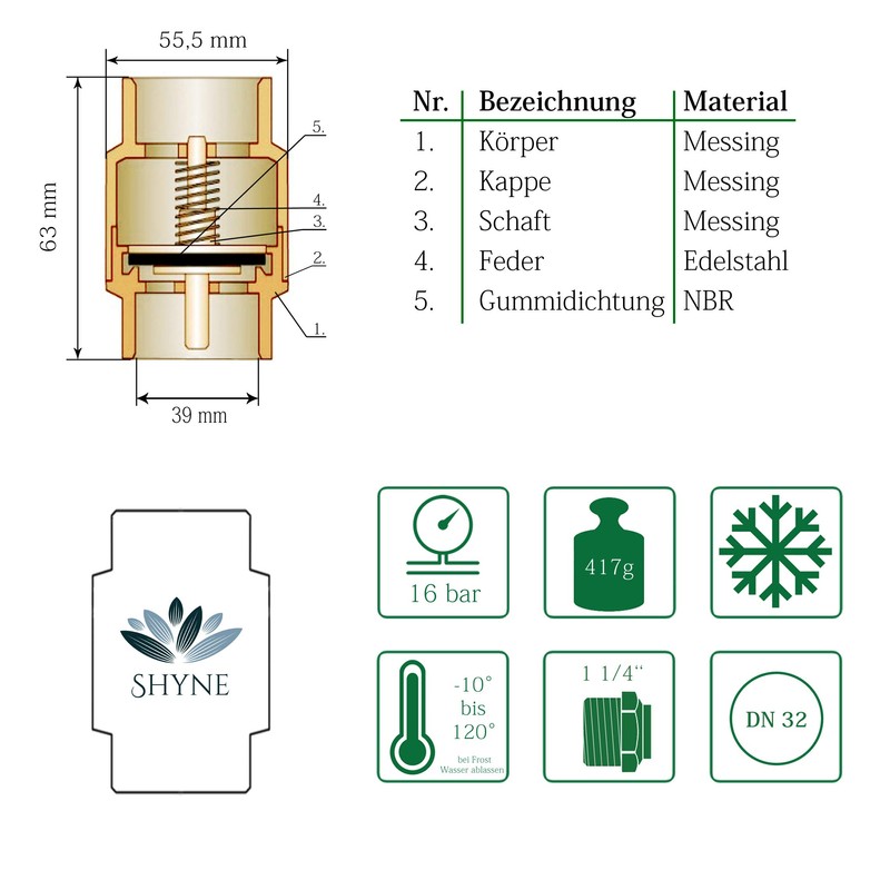 SHYNE SHYNE Premium 1 1/4 Zoll (5/4') Rückschlagventil aus hochwertigem Messi...