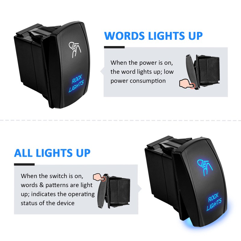 - Rocker Switch: 12V 20A and 24V 10A DC