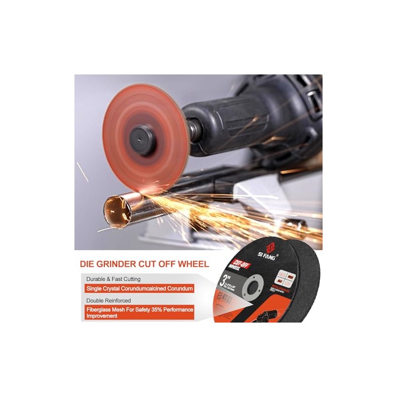 - Durability and Safety SI FANG 3 inch cut-off wheel are made of long-lasting and valuable single crystal corundum & calcined corundum, built for a more robust and economical cutoff wheels. The double reinforced fiberglass mesh and its balanced material structure make these cutting wheels safer and not be easily broken.
