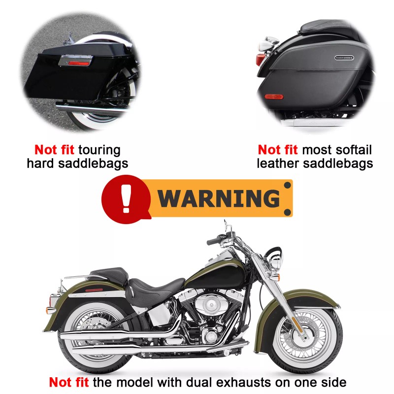 - Note 2: Does not fit hard saddlebags and most Softail leather saddlebags.