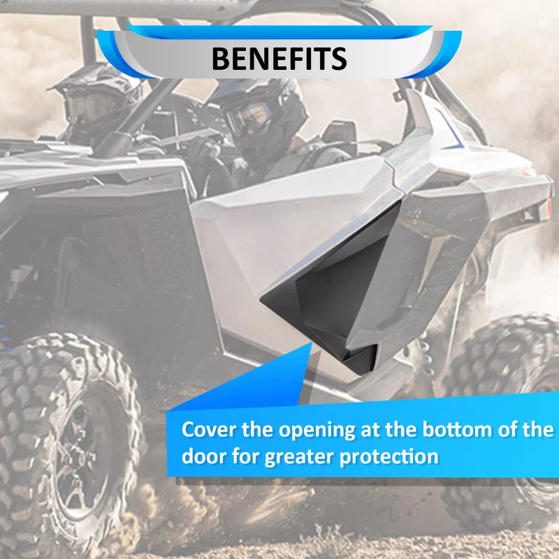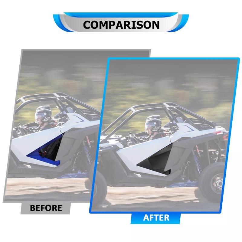 Our door closeoff inserts are specially designed for Polaris RZR models, they fit perfectly into the factory door, seamless fit and good sealing after installation, providing a great factory look while offering extra protection to safeguard it against rain, snow, dirt, rocks, etc.