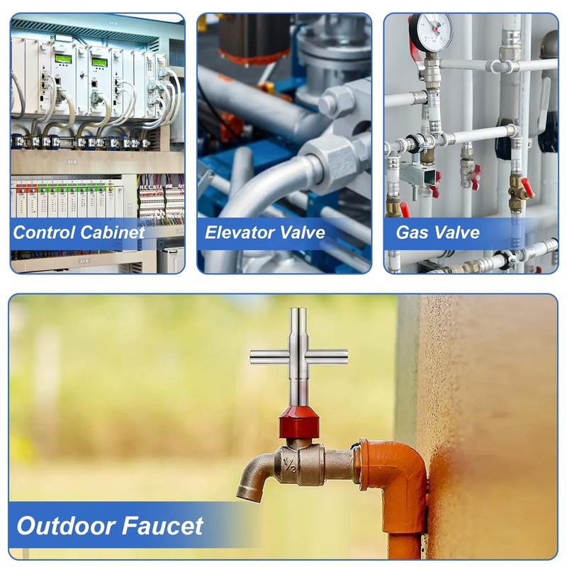 Application: for faucets, radiators, electricity, water and gas pipes, cabinets, elevators and other valves