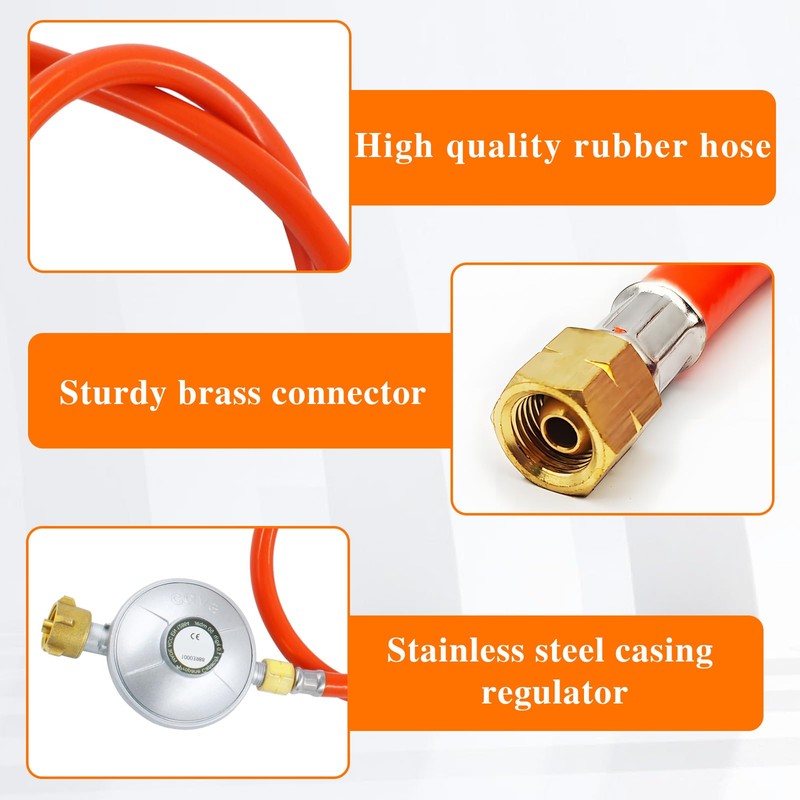 1. Gas pressure regulator and gas hose made of high quality bronze and rubber, sturdy and durable