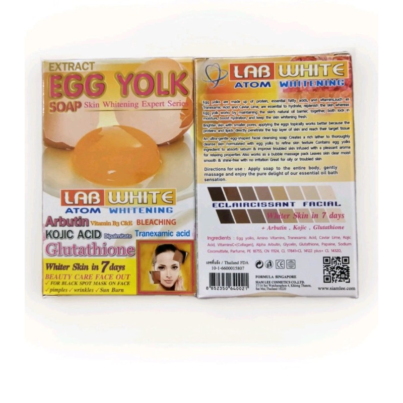 SIAM LEE 1× Bar Lab white Egg Yolk Glutathione Lightening & Exfoliating SOAP