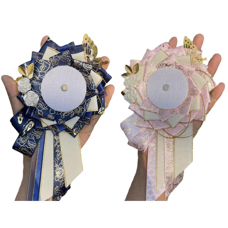 - Product Specifications: Set Contents: 2 rosettes for tin badges, Size: Length 7.9 x Width 4.7 inches (20 x 12 cm), Material: Polyester + plastic, Color: Blue + Pink