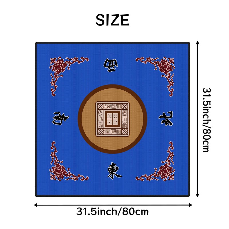 - SIZE AND MATERIAL: This mahjong mat measures 31.5 x 31.5 inches and is 0.23 inches thick. The surface of the mahjong mat is made of polyester fiber (crystal velvet fabric) and the back is made of non-slip silicone.