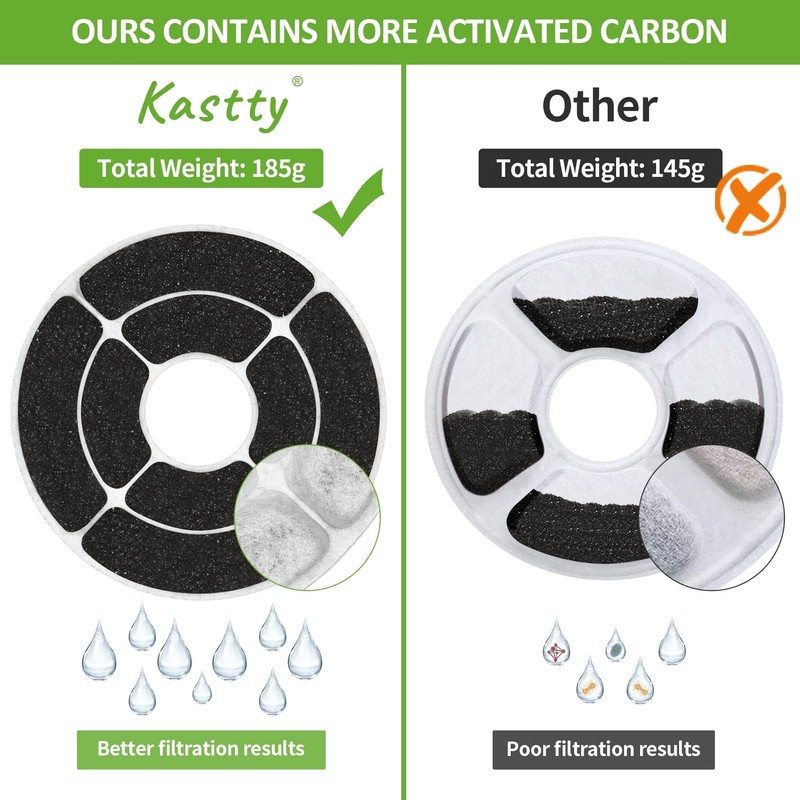 - 【 Frisches, sauberes Wasserbrunnen 】: 8 x Kokosnuss-Aktivkohle absorbieren Gerüche. Sorgfältig fügen wir 8 x Schwamm hinzu, um alle großen Gegenstände wie Haare oder Essensreste zu filtern, falls es verstopft. Ihr Haustier erhält mit unserem Filter immer frisches und sauberes Wasser.