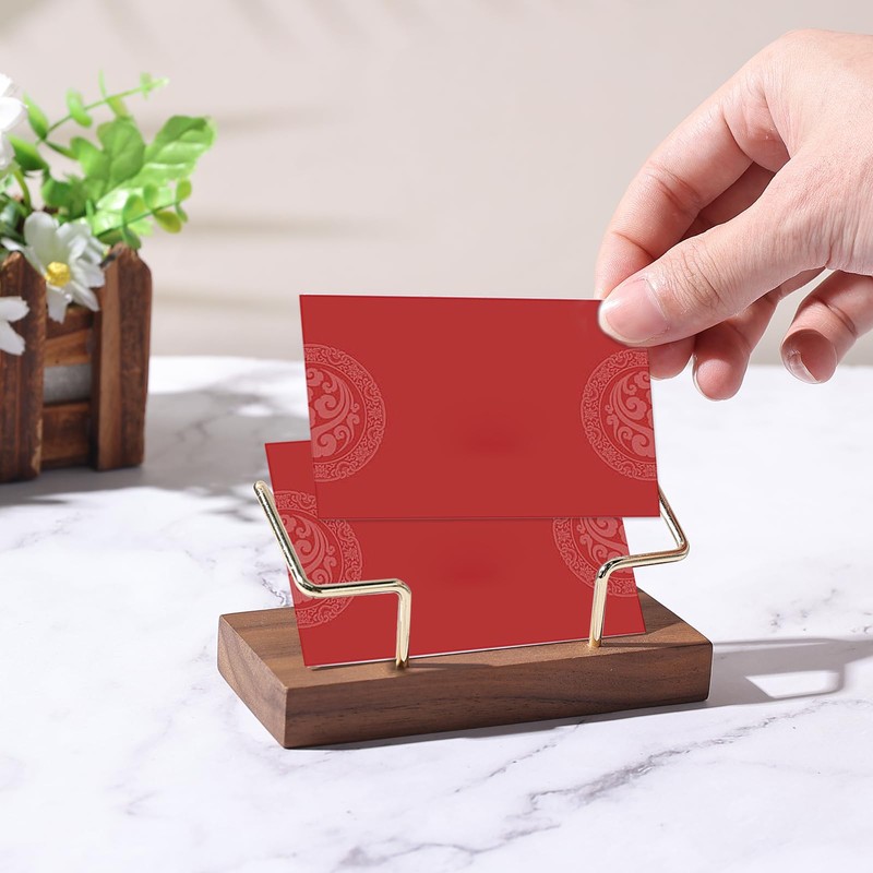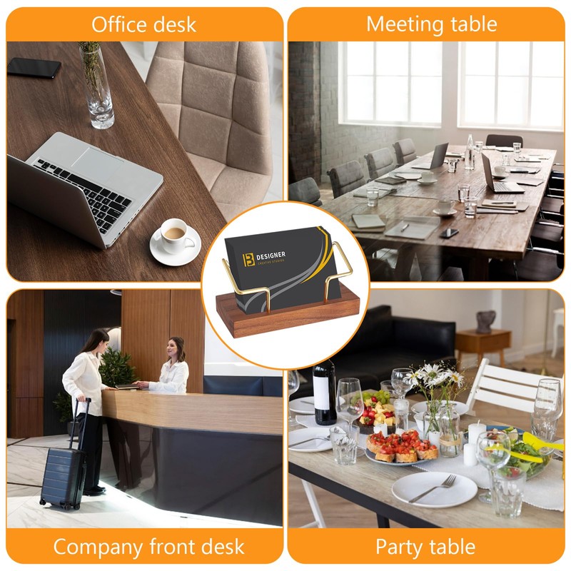 - MULTIPLE BUSINESS CARD STAND You can give gift card holders to your friends, family and colleagues or employees. The wooden business card holder with strong support feet is suitable for professional environments such as office tables, company reception tables, trade show tables, conference tables, etc