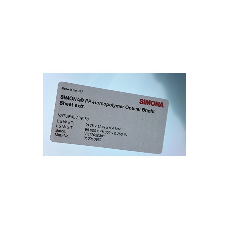 SIBE AUTOMATION Natural Polypropylene 1/4" Thick Sheet - 24" x 48"