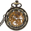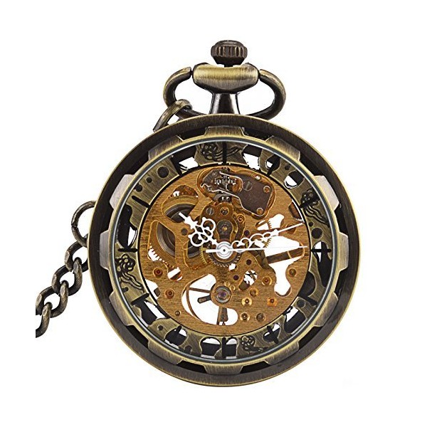 SIBOSUN Open Face Pocket Watch Steampunk Bronze Mens Transparent Skeleton Mec...