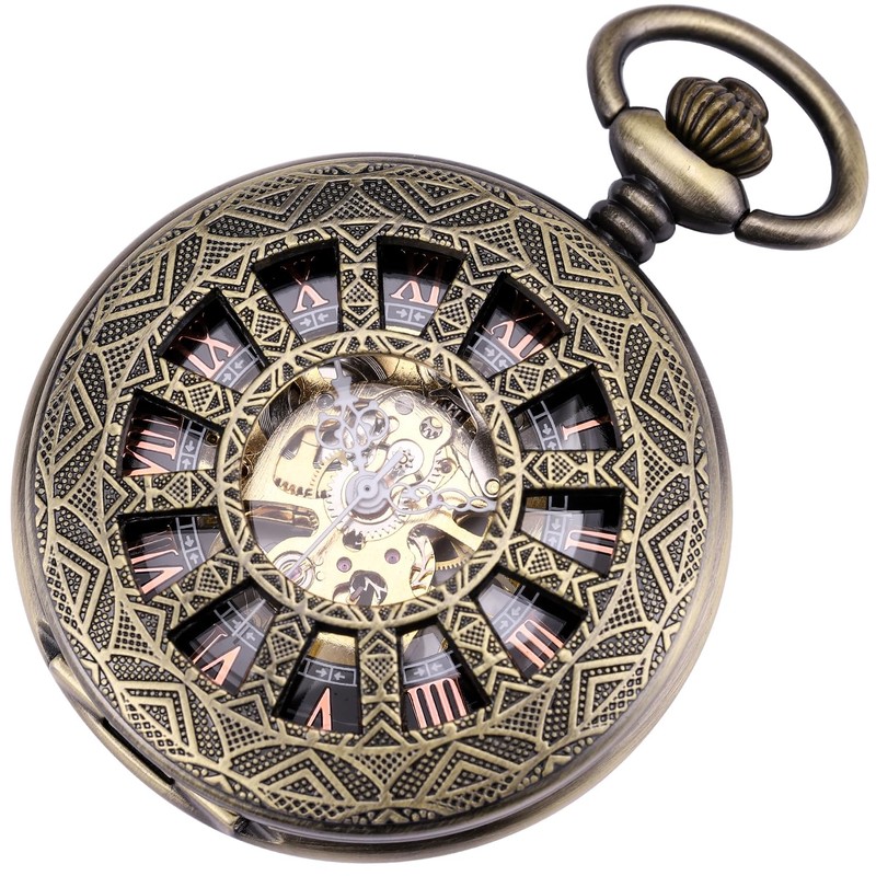 SIBOSUN Skeleton Pocket Watch Special 12 Little Window Case Design Men Bronze...