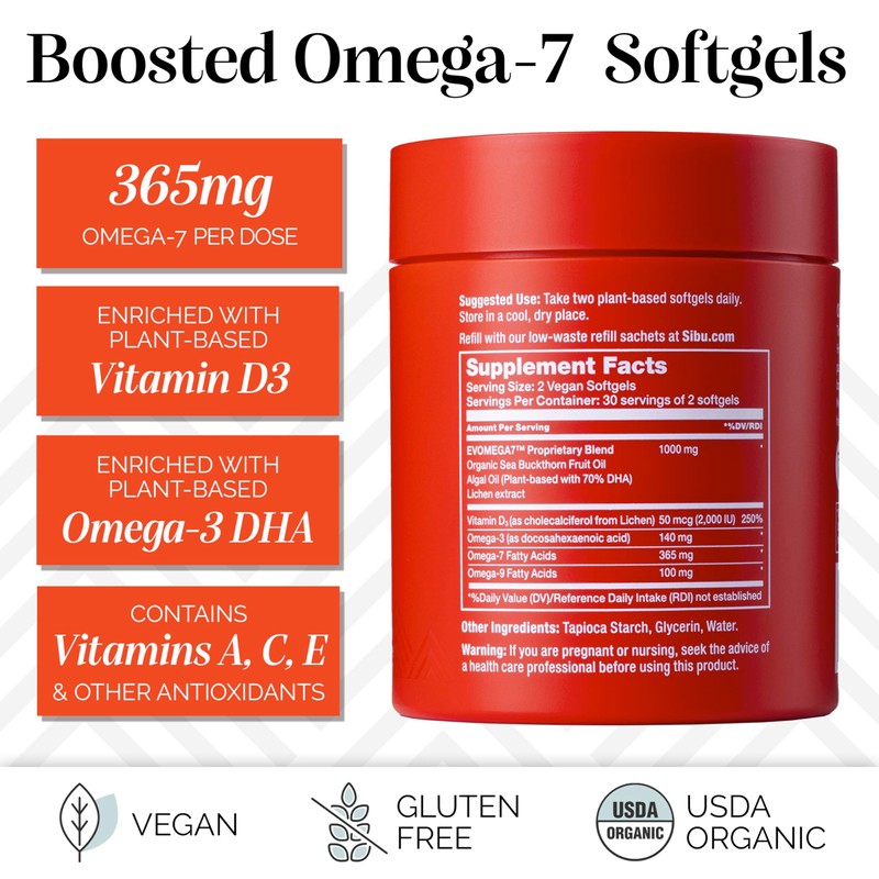 sibu sibu Omega-7 Plus Softgels Starter Kit (60ct, 30 Day Supply) – Blend of Sea Buckthorn Oil and Plant-Based Vitamin D3 & Omega-3 DHA