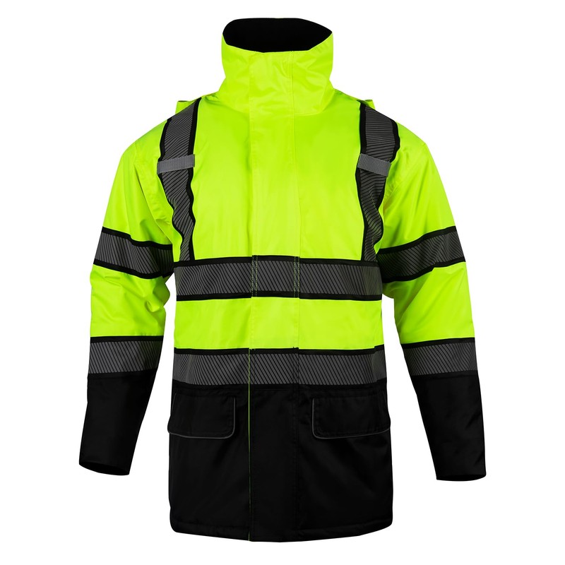 - 【High Visibility Safety Parka】:2-inch wide silver reflective strips surround your arms,shoulders and torso for maximize high visibility to protect your safety in daytime and nigh time when you working or doing outdoor activities in low light conditions.And this high visibility safety parka workwear reflective strips using heat transfer technology,more solid than sewing reflective strips,not easy to fall off and have longer service life.