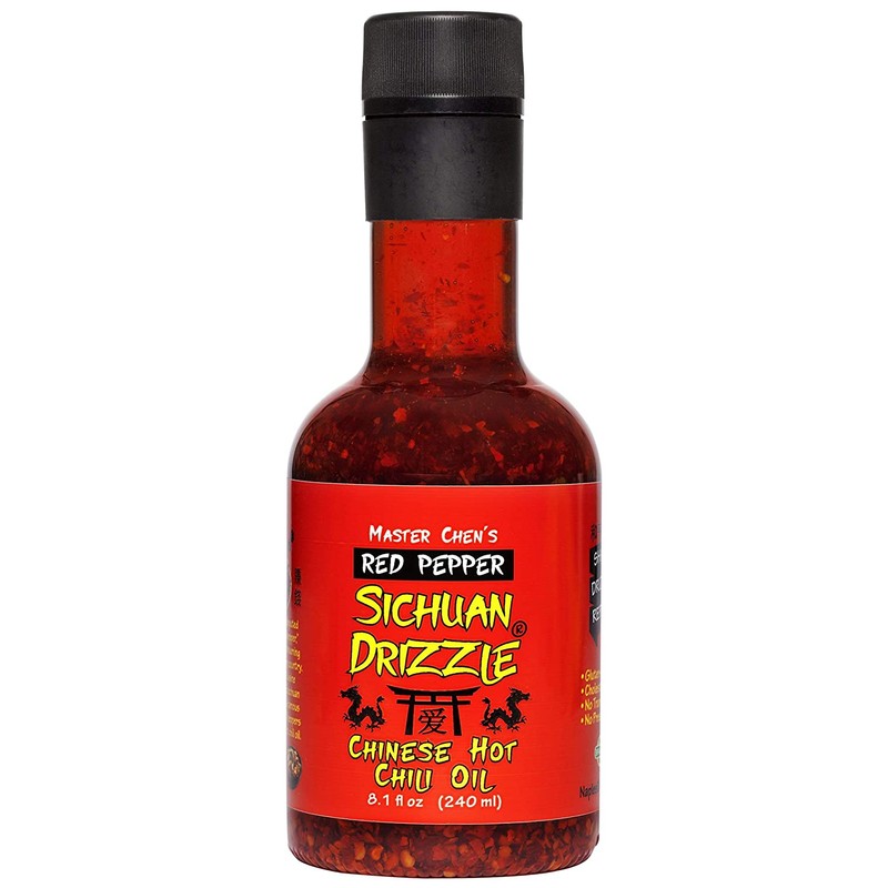Sichuan Drizzle Chinese Chili Oil -- Condiment & Ingredient, Premium EVOO with Hot Chili Flakes, Rice & Noodles' Condiment, 100% Pure EVOO, Vegan, Gluten-Free & Paleo
