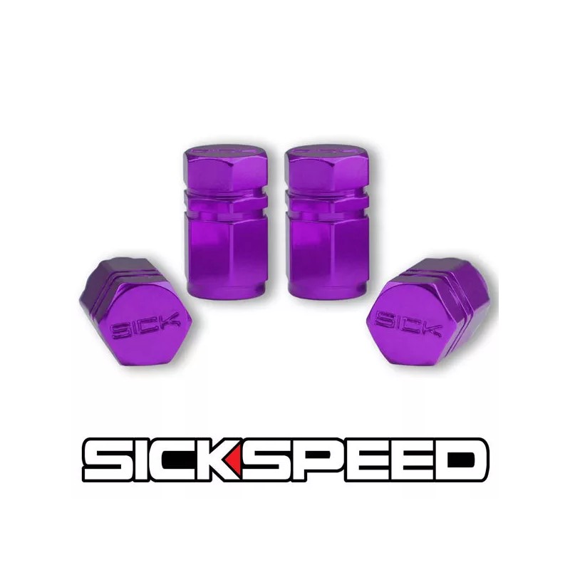 SICKSPEED 2016 4 PC PURPLE HEXAGONAL CHROMED ALUMINUM VENTIL VALVE STEM CAPS FOR WHEEL G01