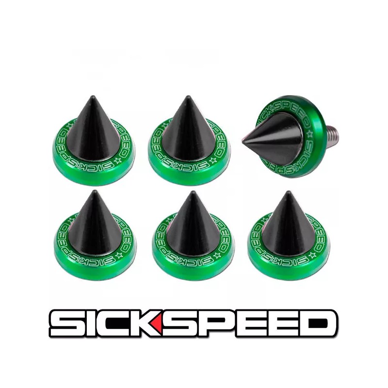 SICKSPEED 6PC GREEN 5MM WINDSCREEN FENDER WASHER BOLT KIT W BLACK SPIKES MOTORCYCLE Z7
