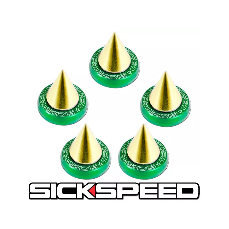 SICKSPEED JDM 2016 5 PC 24K GOLD SPIKED GREEN WASHER/BOLT FENDER/BUMPER ENGINE DRESS UP KIT P1