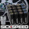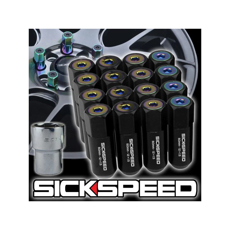 SIckspeed JDM Racing Lugnuts 16 BLACK/NEO CHROME CAPPED ALUMINUM 60MM EXTENDED LOCKING LUG NUTS 12X1.5 N16