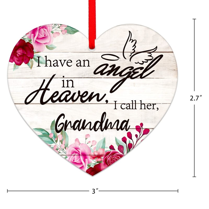 - FLOWER PRINTED DESIGN: Christmas in heaven ornament printed with Words and patterns of"I have an angel in heaven,I call her grandma" ,decorative with flowers,bright color and double-side.