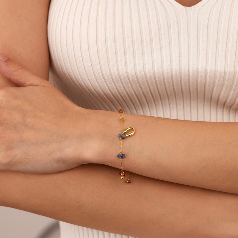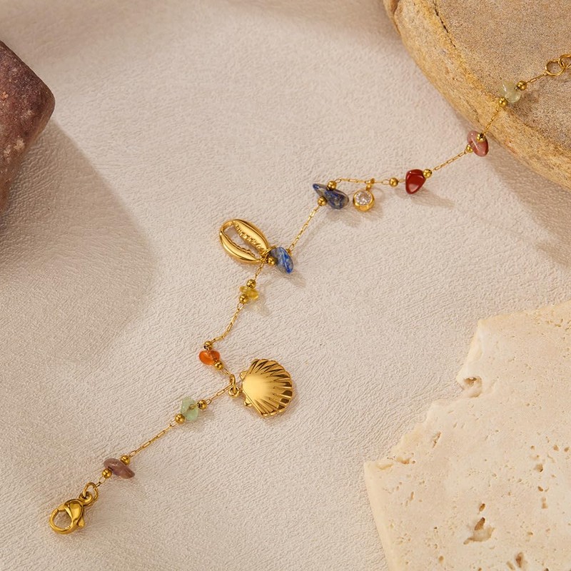 - PREMIUM MATERIALS: Crafted from durable stainless steel with a luxurious gold finish, featuring stone beads and decorative shell charms