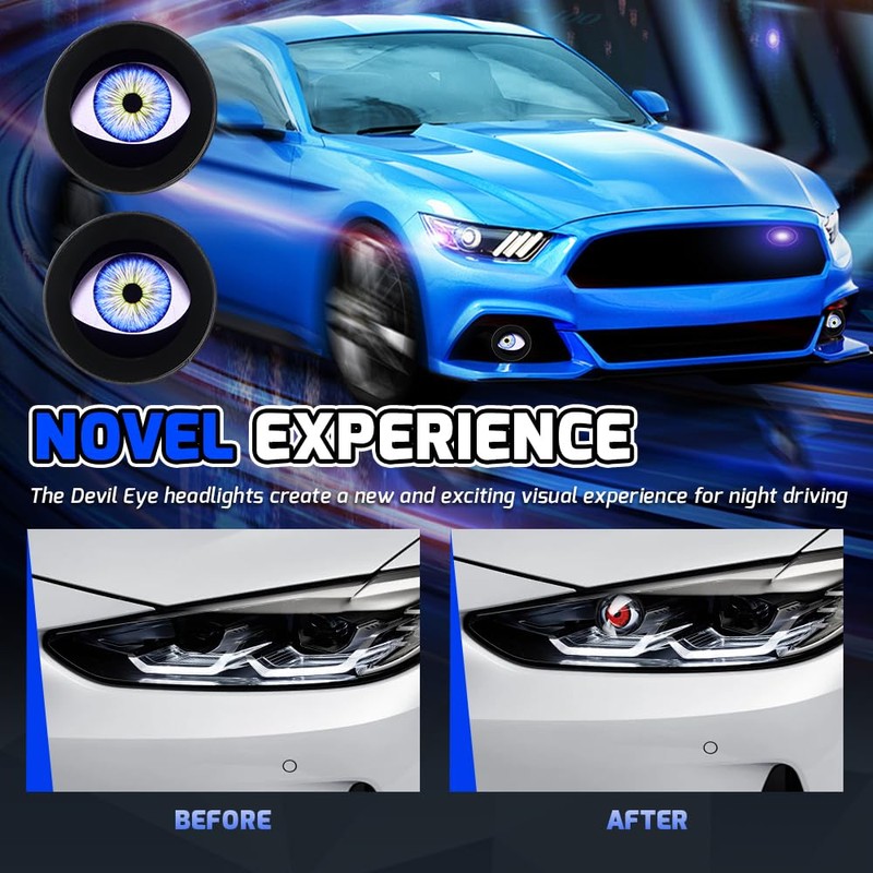 - 【Devil Eye HeadLight】Devil eyes light for cars, easily upgrade headlights or fog lights,provide stylish appearance for your vehicle. Lifelike dynamic effects super eye-catching,make the car stand out on the road at anytime and place,enjoy a fun driving experience.