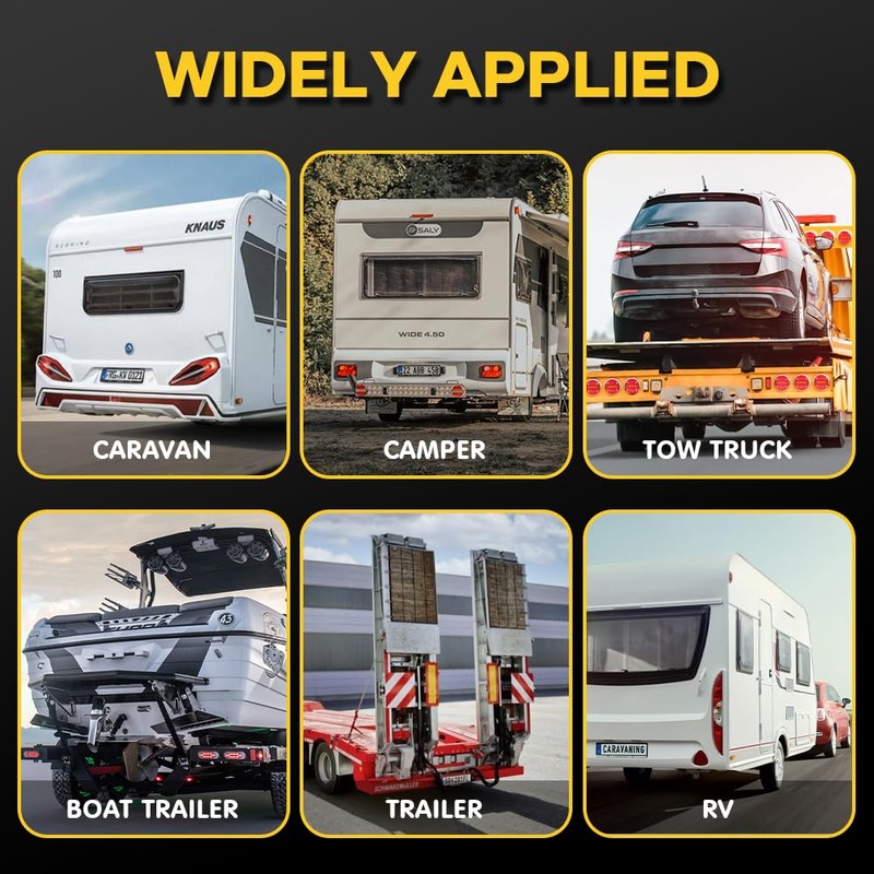 - 【High Brightness More Safety】Magnetic Trailer Lights are equipped with tail light/license plate light/brake light/left turn signal and right turn signal.Made of high quality hd PC + ABS material,IP65 waterproof,top custom LED beads ensure your vehicle visible in low light or bad weather.