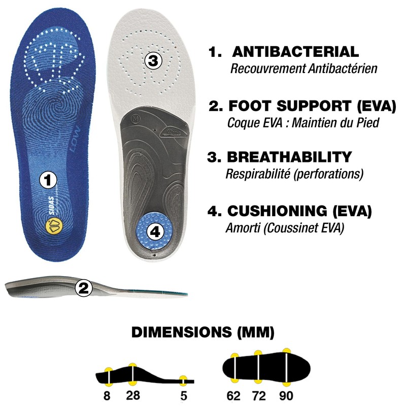 Sidas 0,9 m Low Einlegesohlen, 326897-Large, blau, Large (Mens-9 to 10/Womens-10 to 11)